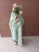 Kids Namaz Chadar With Sleeves (Age 6-11 years) - Mint Green With Green Flowers