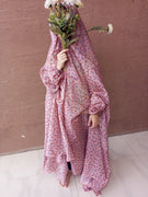 Namaz Chadar With Sleeves - Pink With Pink Flowers