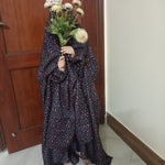 Kids Namaz Chadar With Sleeves (Age 6-11 years) - Navy Blue With Brown Flowers