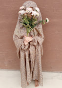 Kids Namaz Chadar With Sleeves (Age 6-11 years) - Beige With Pink Flowers
