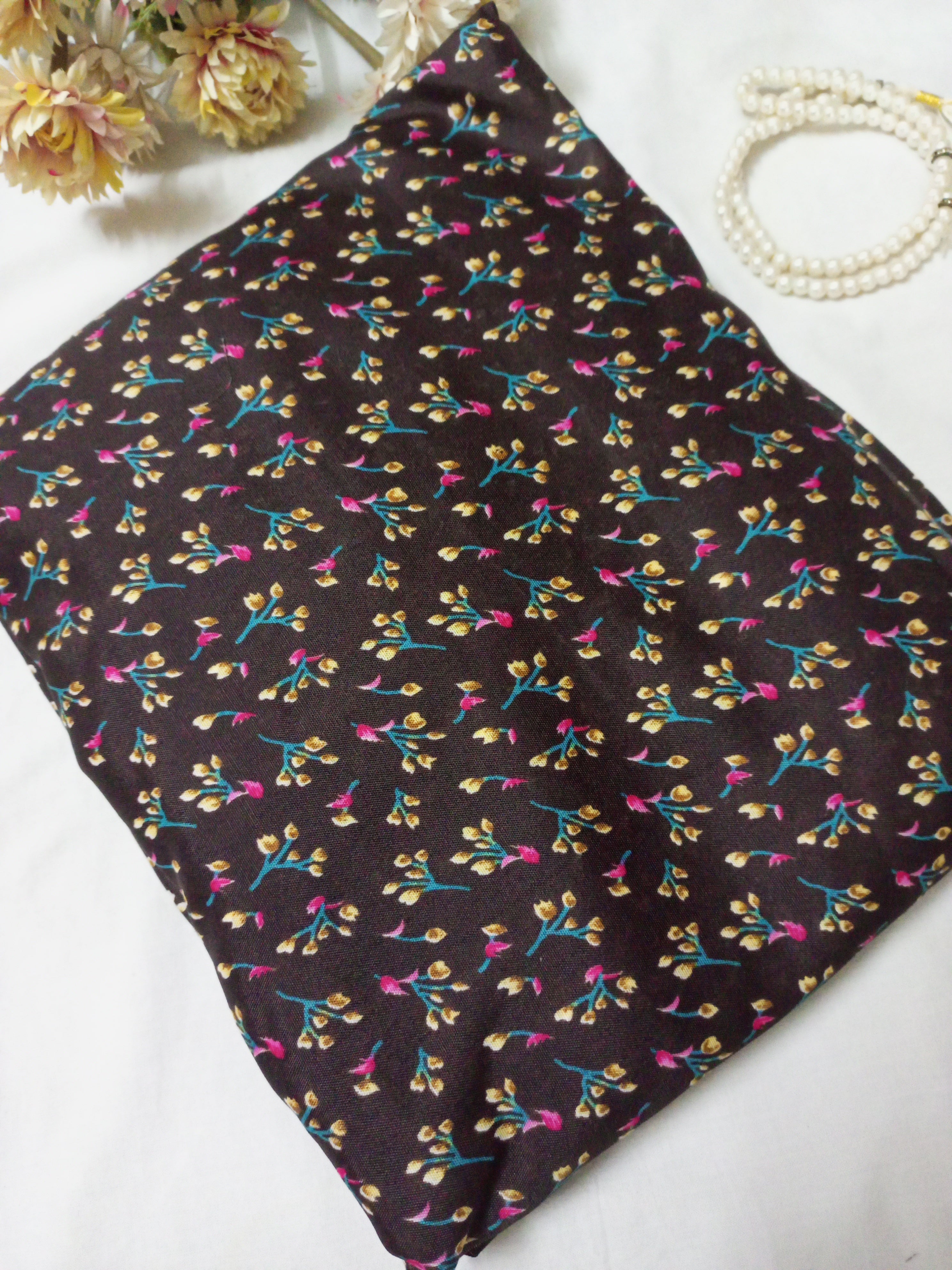 Namaz Chadar With Sleeves - Teal Brown Flowers
