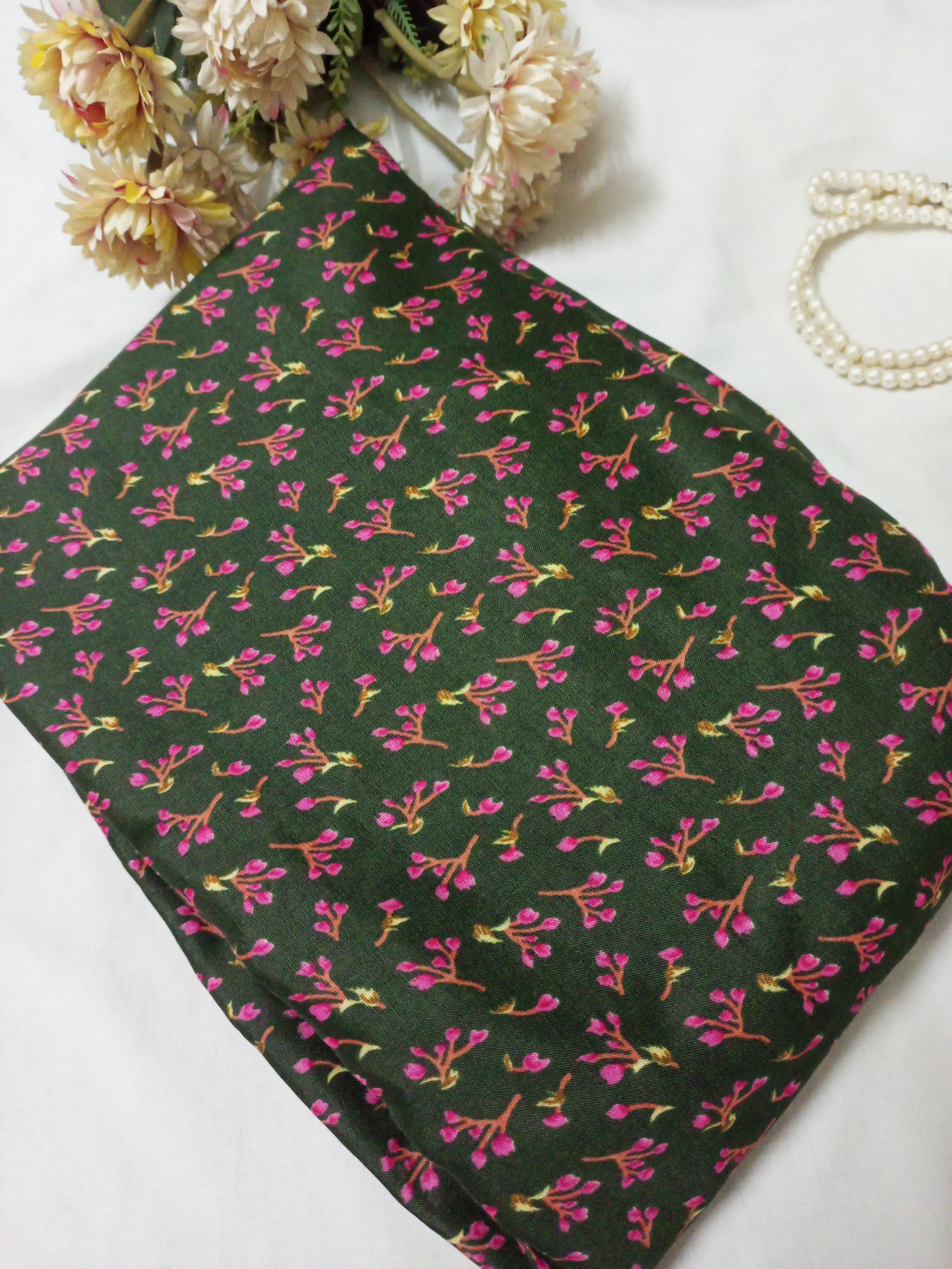 Namaz Chadar With Sleeves - Green Red Flowers