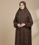 Namaz Chadar With Sleeves - Teal Brown Flowers