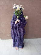 Namaz Chadar With Sleeves - Indigo With Pink Flowers